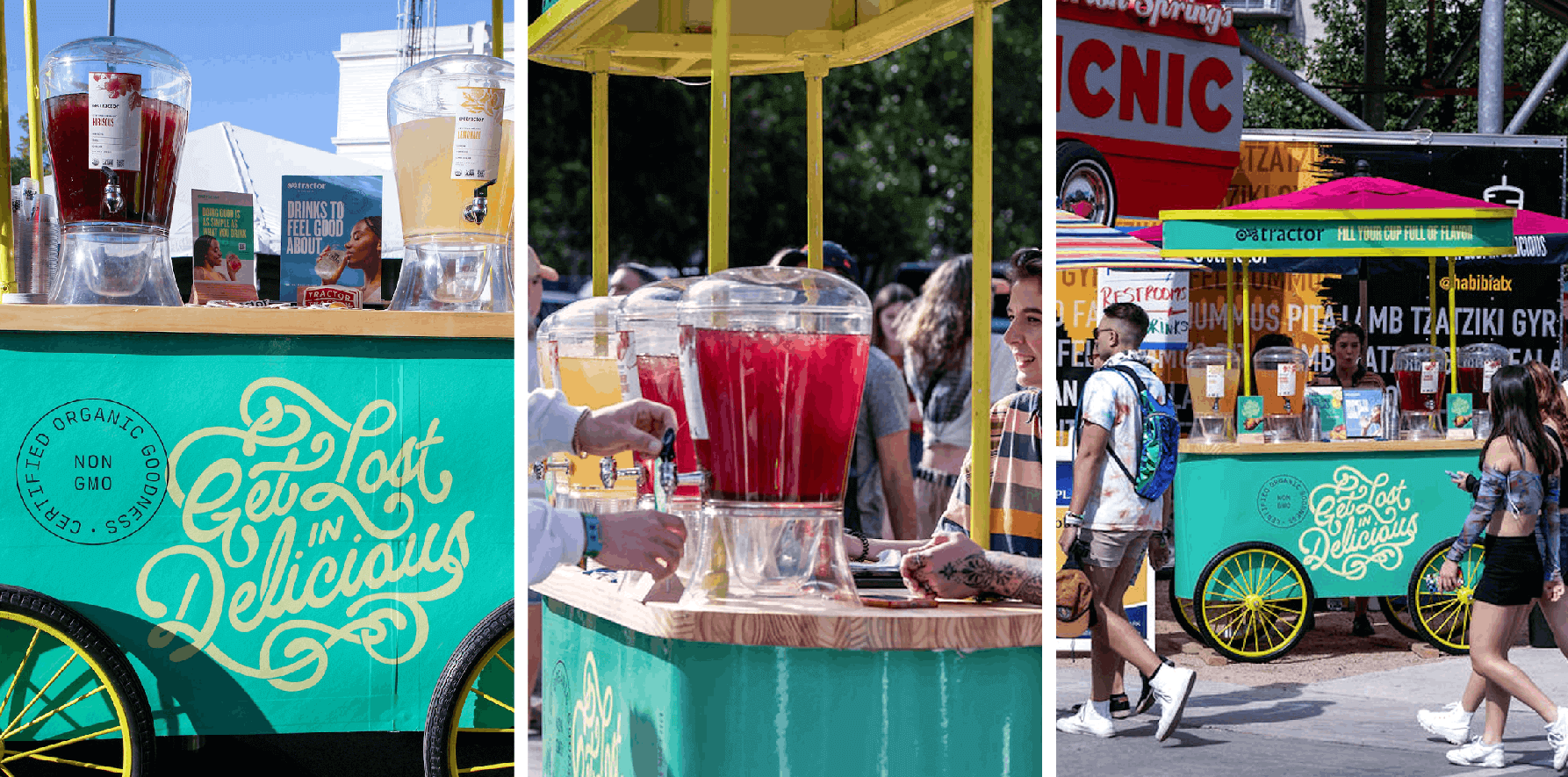 Brightly painted tractors, sampling carts and pedicabs that transported people to local restaurants serving Tractor beverages extended the experience across eight cities — turning ordinary festivals and event grounds into vibrant Tractor playgrounds. Every touchpoint told the same story: nature’s in the driver’s seat, and delicious is best when it’s organic.